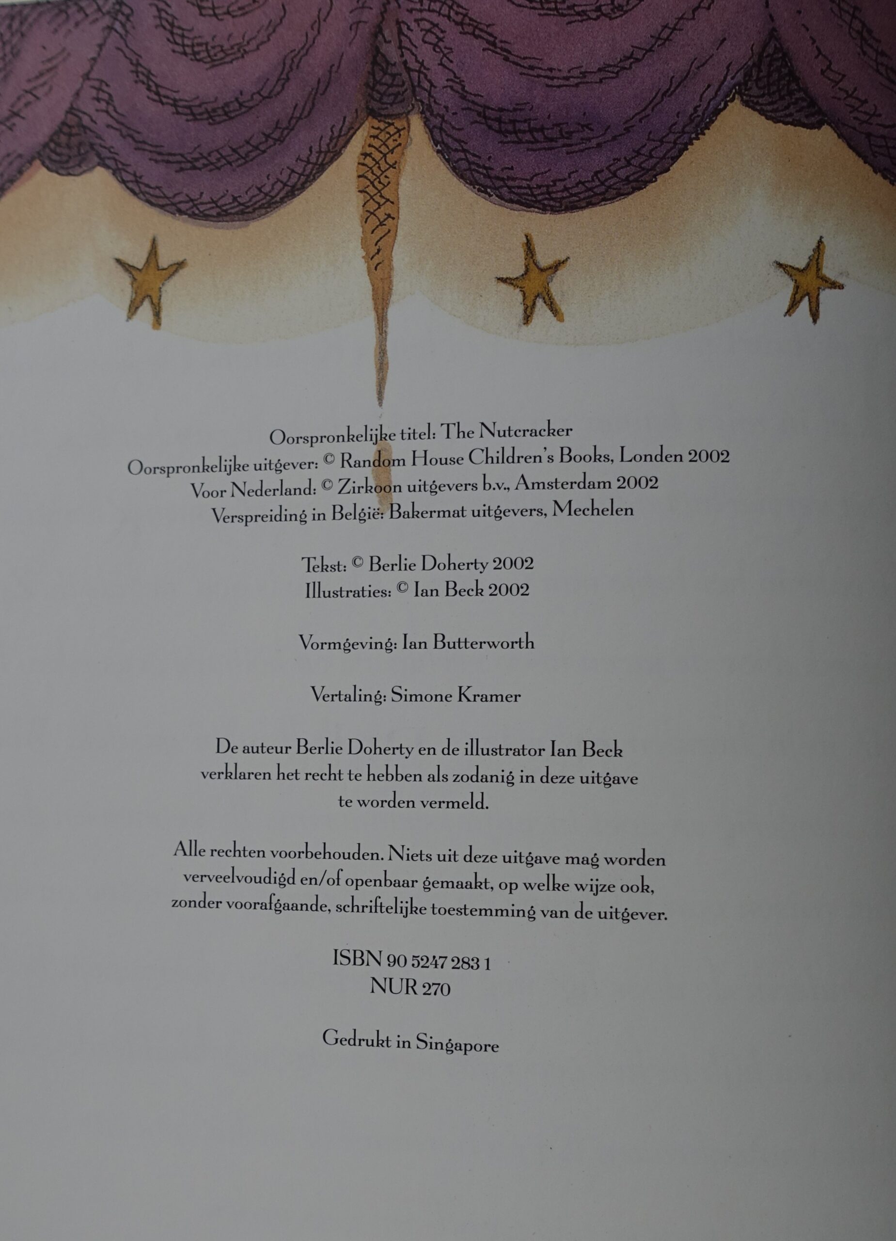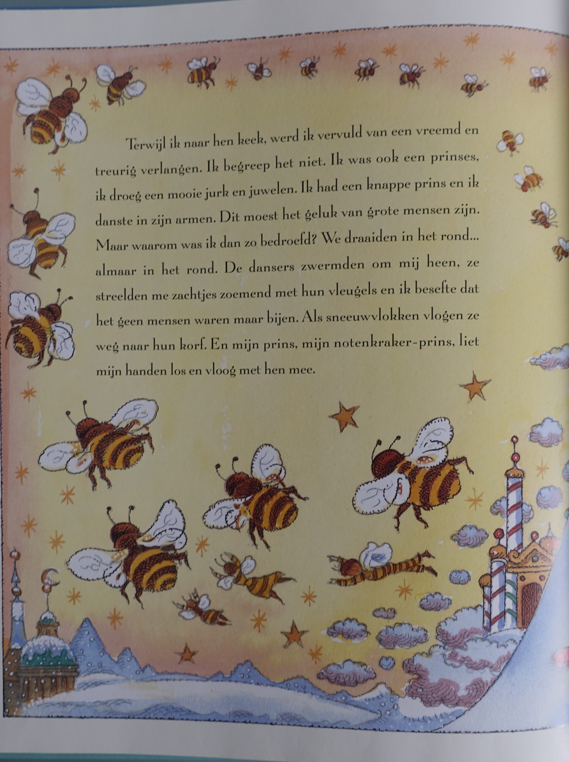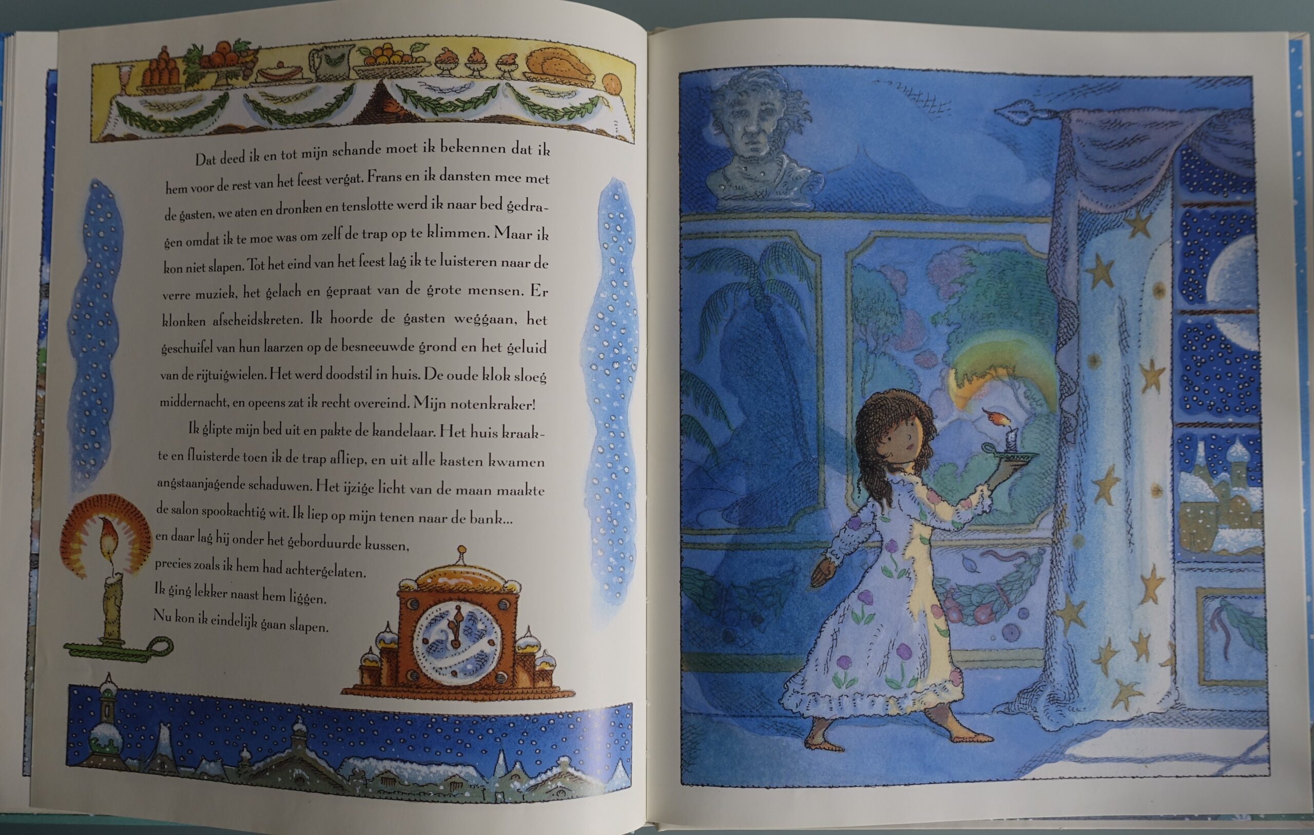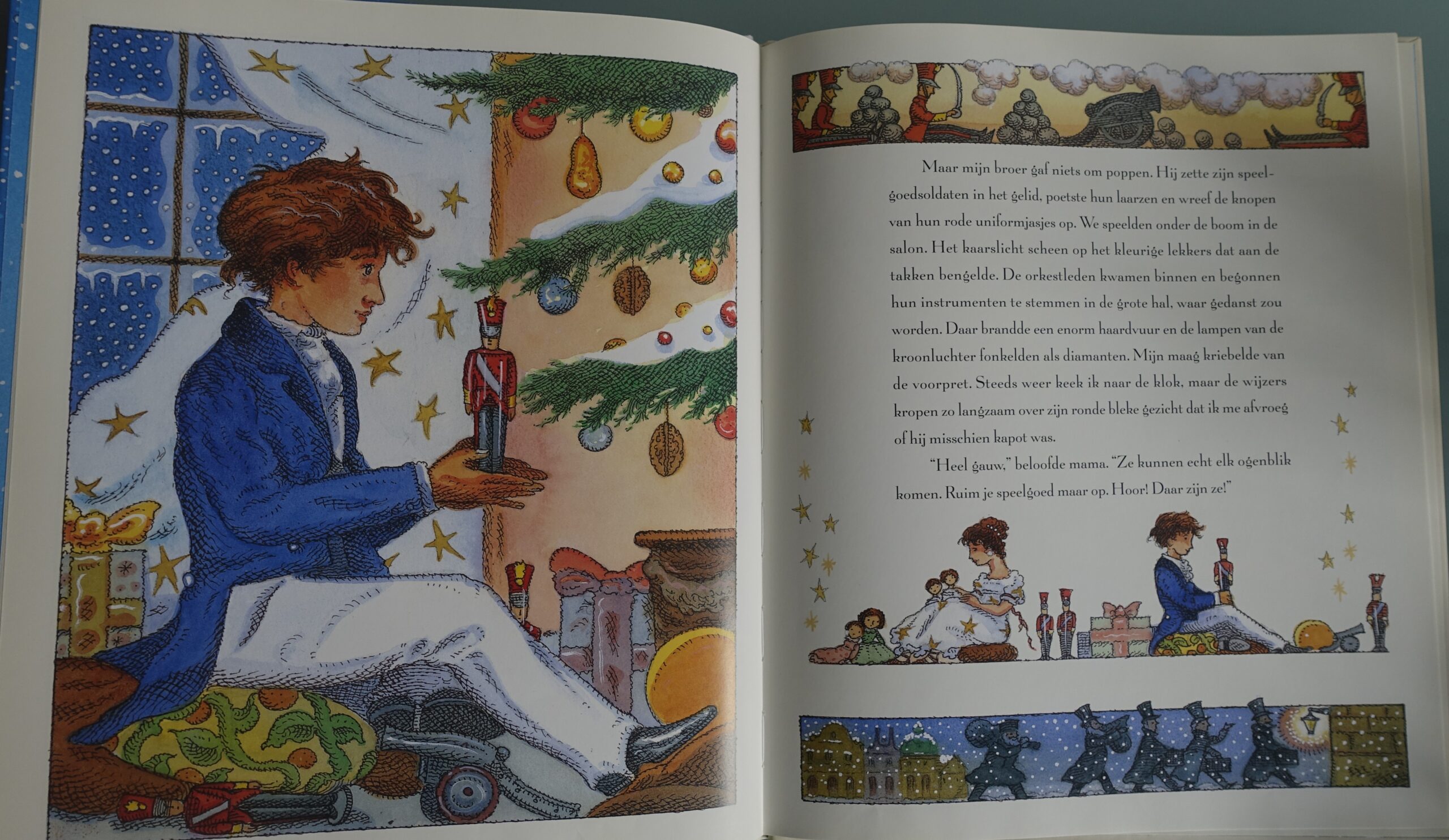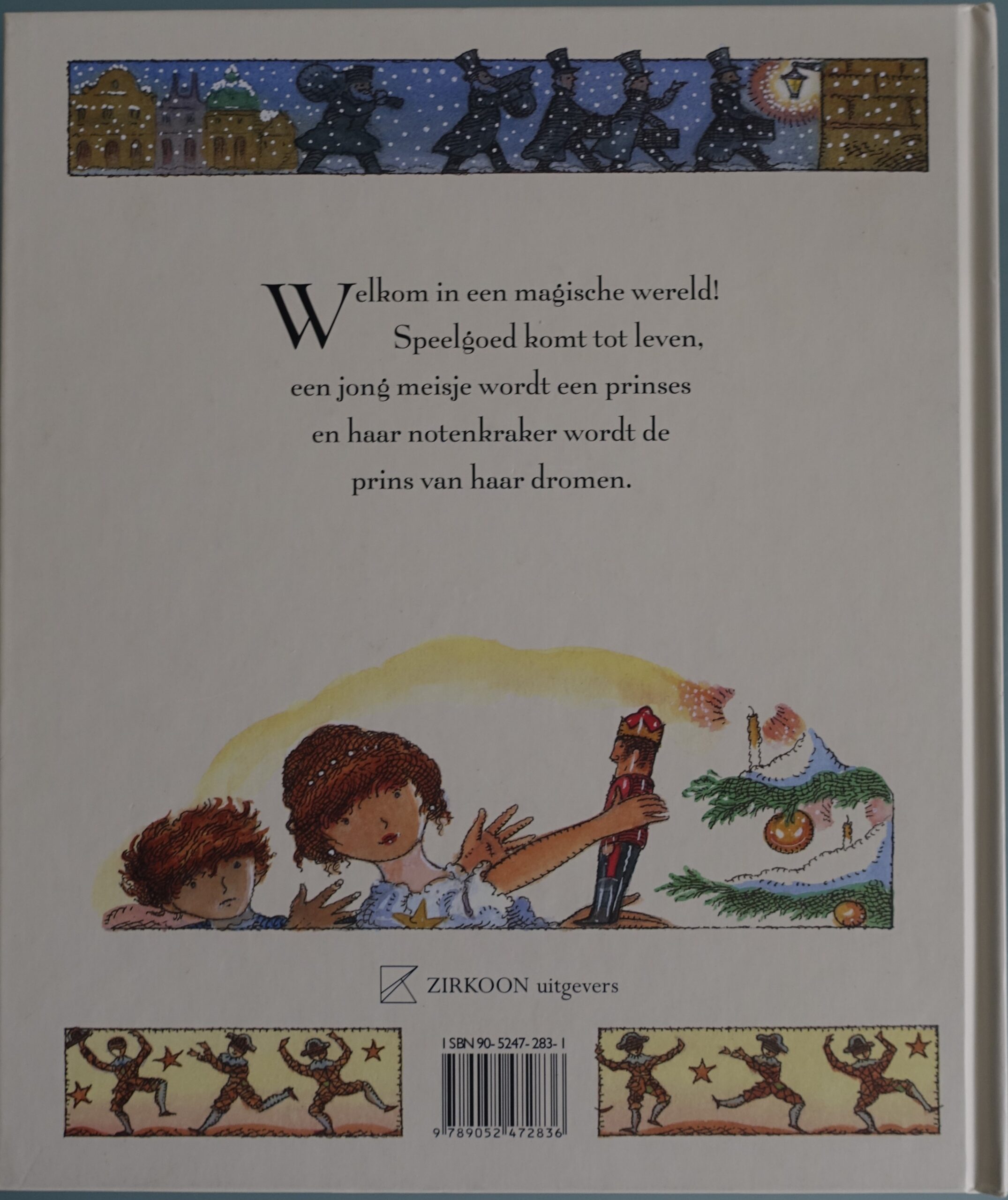 Clara droomt dat de notenkraker die ze heeft gekregen als aanvoerder van de speelgoedsoldaten de muizenkoming verslaat. Vierkant prentenboek met romantische tekeningen in kleur die een negentiende eeuwse sfeer uitstralen. Vanaf ca. 5 jaar.