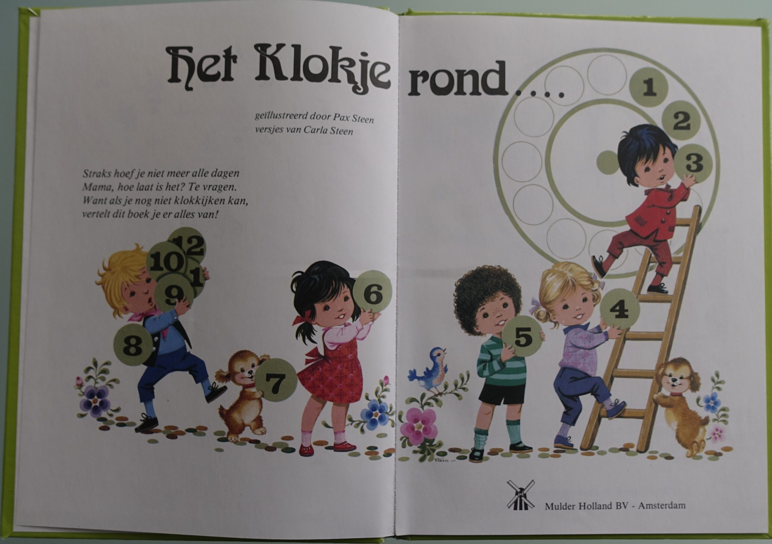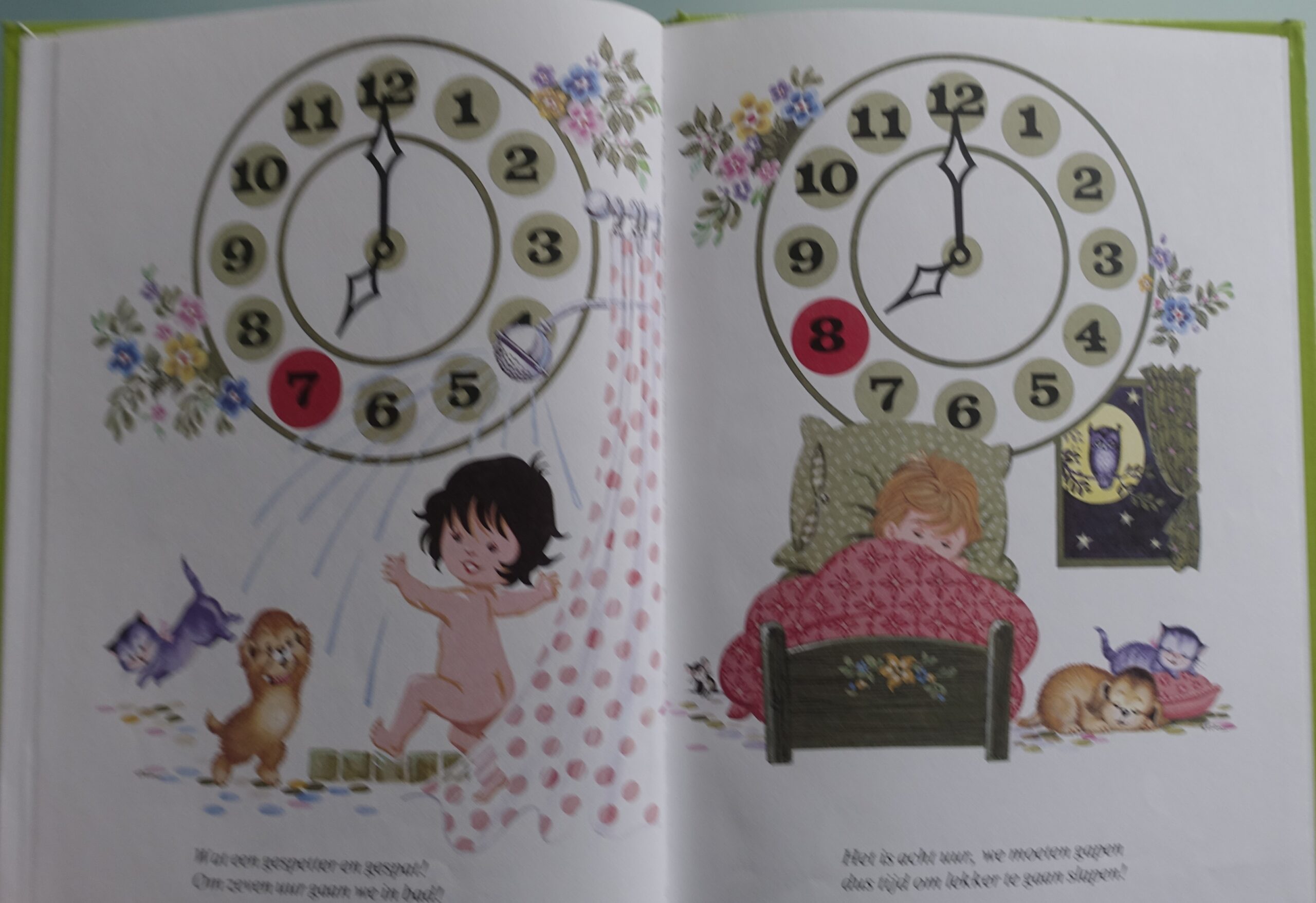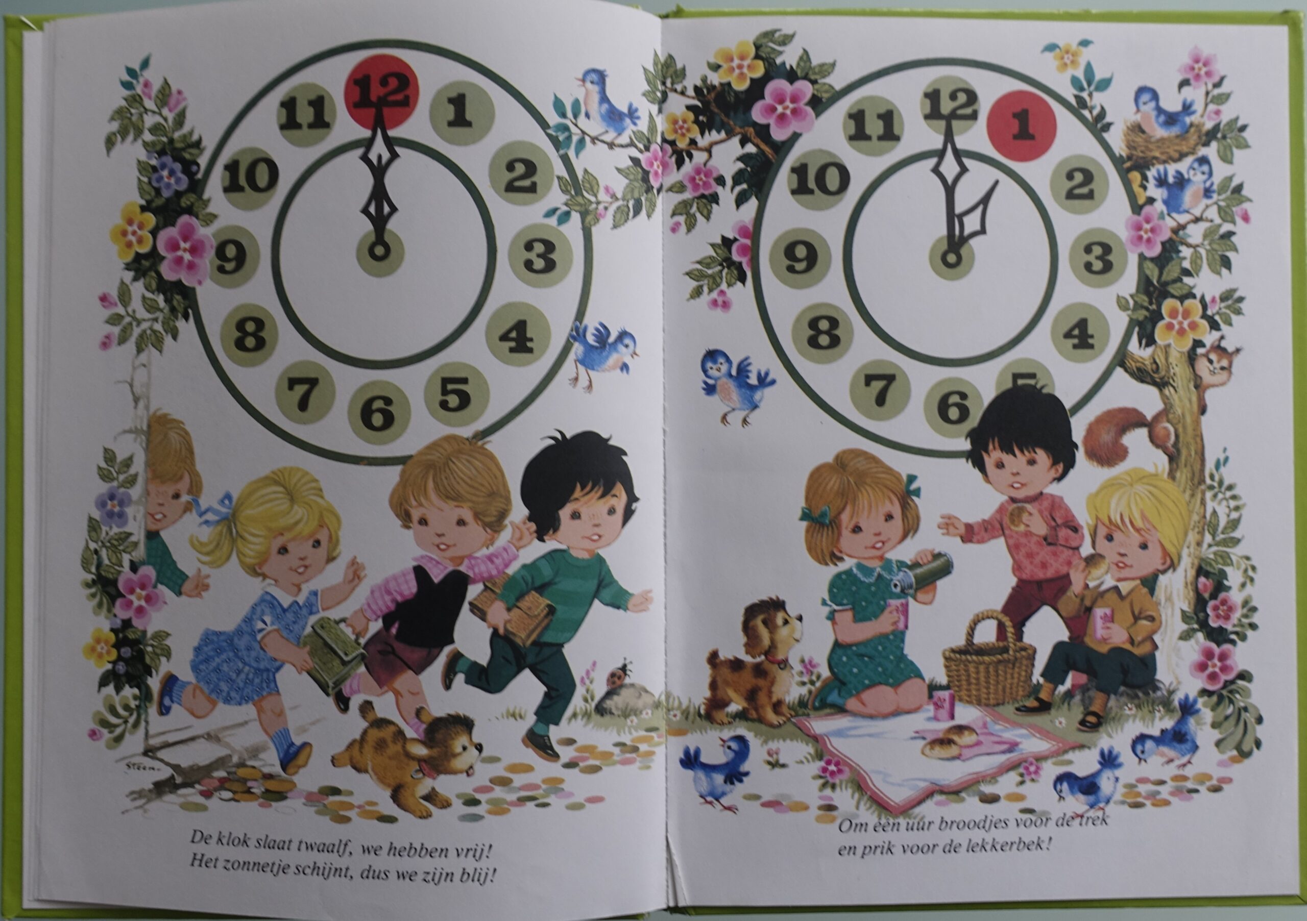 om te leren klok kijken, met op elke bladzijde een rijm