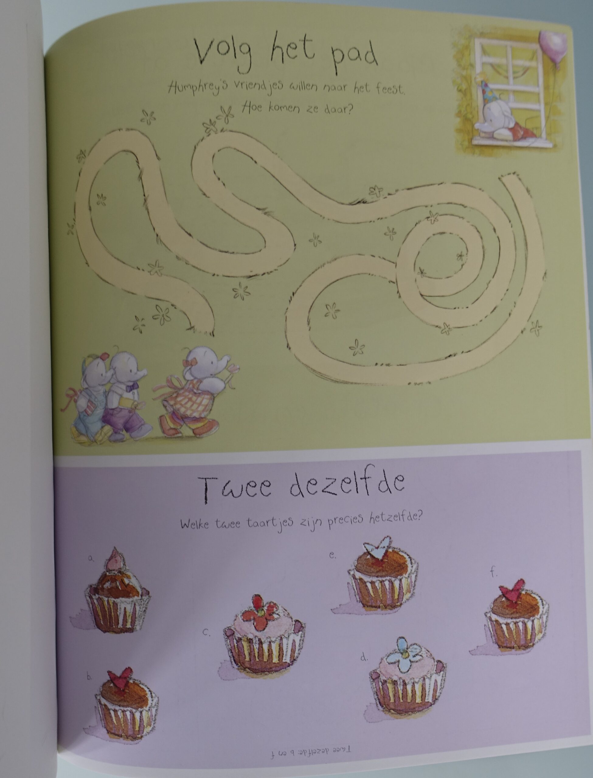leuk knutselboek met stickers, puzzels en spelltjes; tekenen, rekenen, kleuren zoeken en nog veel meer; alles in zachte pastelkleuren