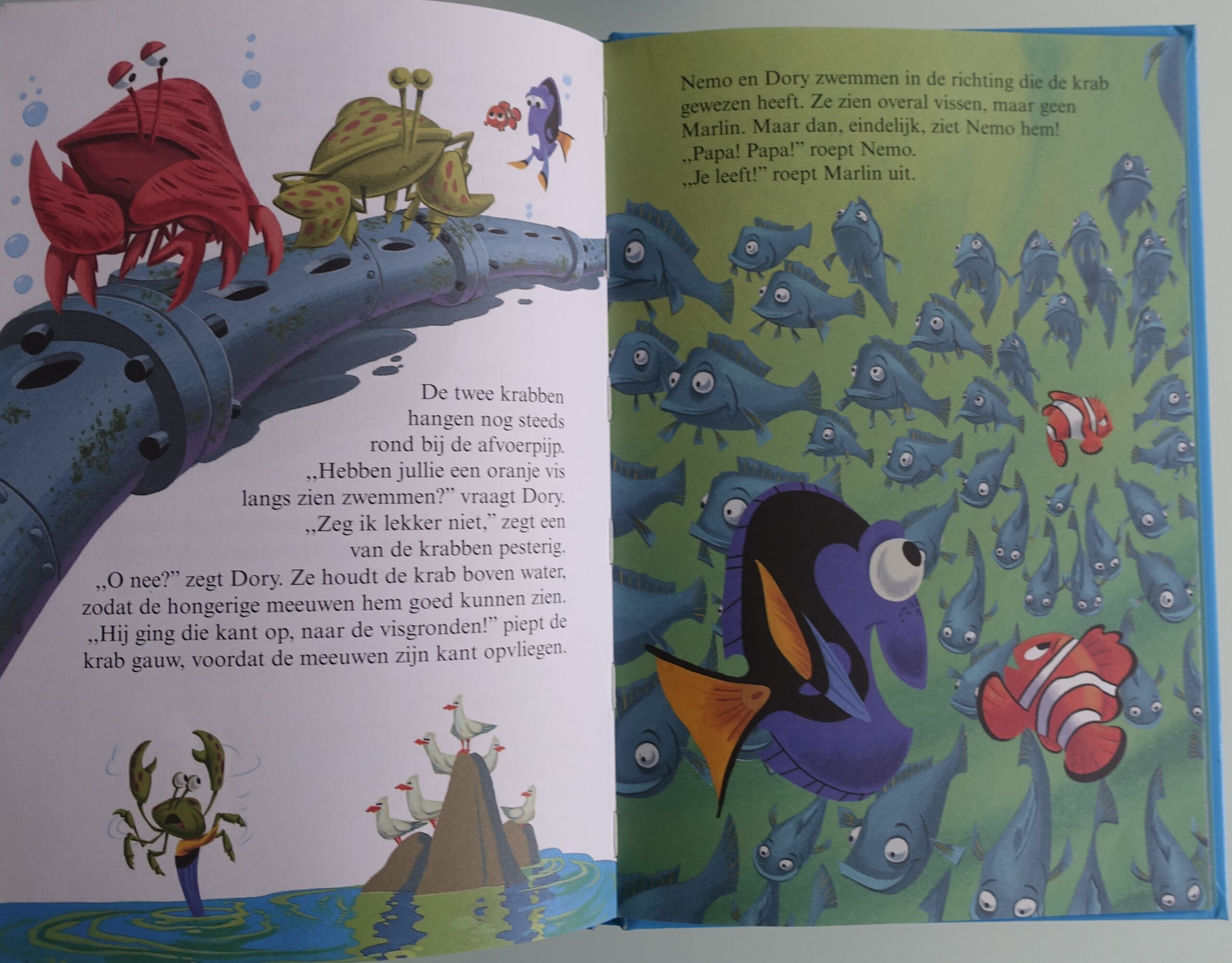 Nemo wordt gevangen door een duiker. Zijn bezorgde vader begint een grote zoektocht. Voorlezen vanaf ca. 5 jaar, zelf lezen vanaf ca. 8 jaar.