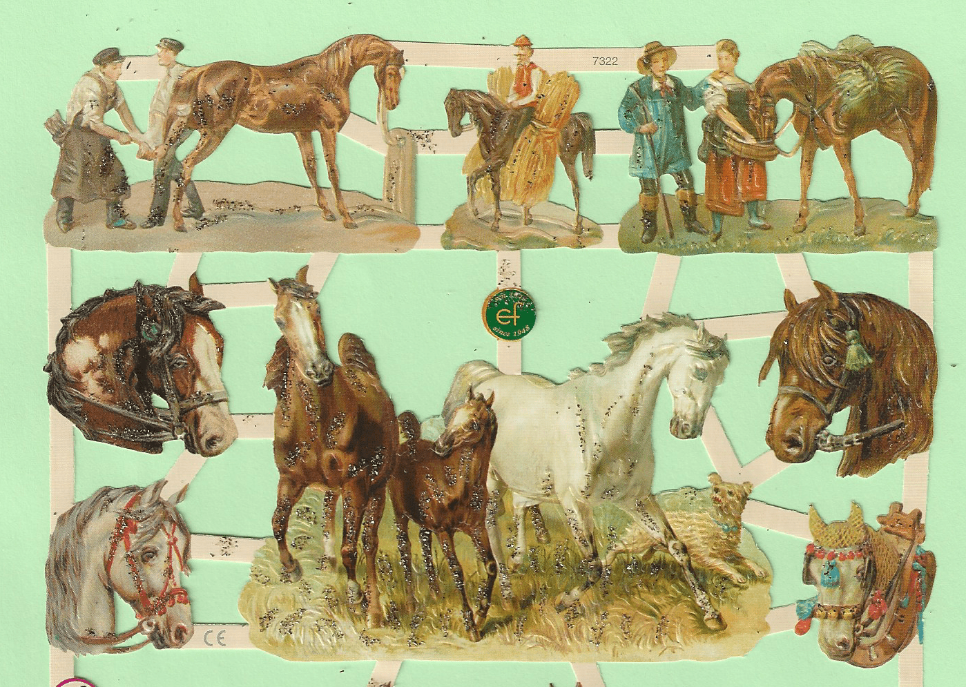 1 vel met poƫzieplaatjes met afbeeldingen van paarden, met glitters